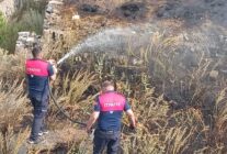 Kars Bayrampaşa TOKİ nölgesinde örtü ve anız yangını kısa sürede söndürüldü